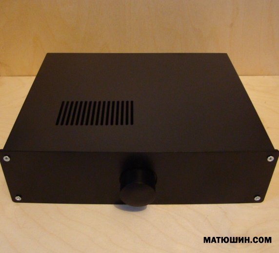 Корпус для двухтактного усилителя на 6П30Бр. Габаритные размеры : 80х250х300 мм, корпус состоит из монтажной панели, перегородки между блоком питания и усилительной частями, накладной (фронтальной)панели. верхней крышки и основания.